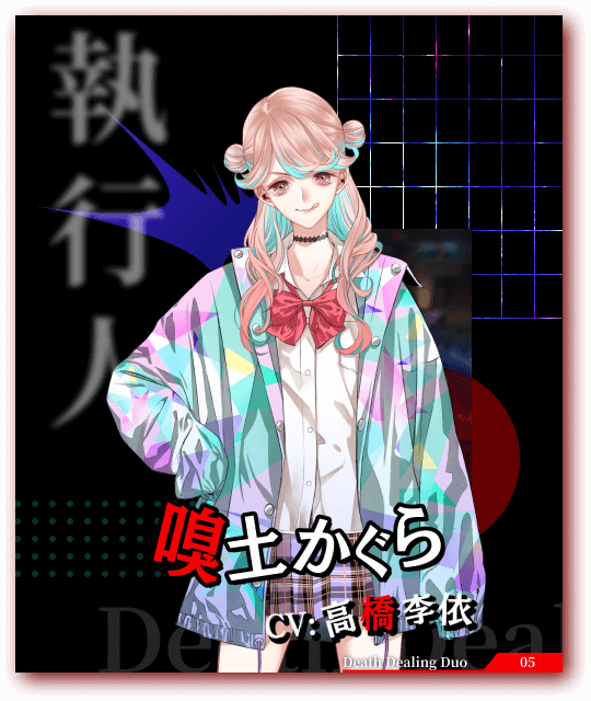 Kagura is a seemingly trashy teen with a penchant for slang. Even after learning that the Prisoners, Futa and Raita, have been convicted of murder, she doesn’t seem to care. She is a cheerful and laid-back girl. She says that she’s taking part in the Yurukill Games to get rich.